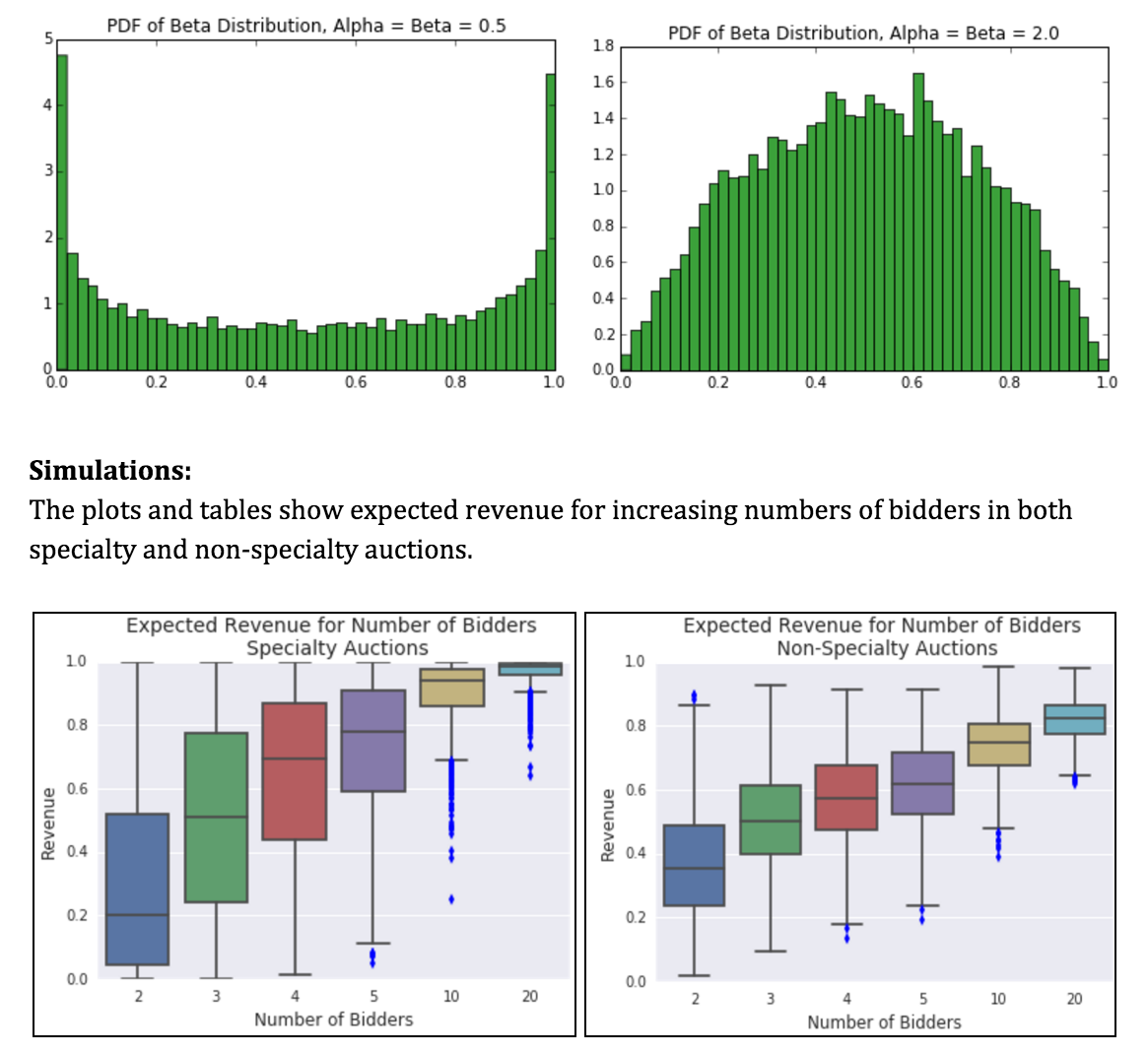 The beta distribution closely models the distribution of values expected in a specialty items auction. Ad agencies and other bidding platforms can use this distribution to estimate and maximize expected payout.