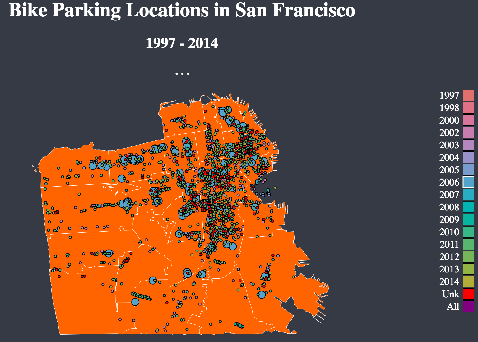 Here is an interactive map showing the growth of bike parking locations over the past 15 years.